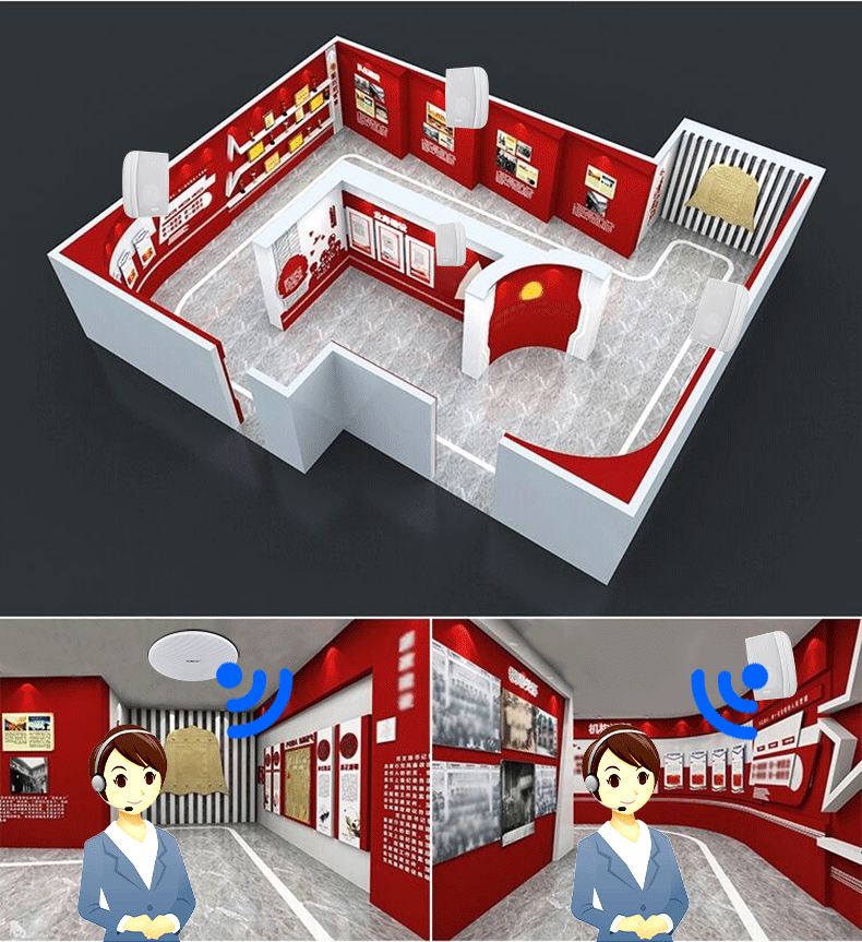 展厅分区语音导览系统的5个应用1、分区讲解(单独讲解模式) 讲解员拿走话筒,走到哪里,哪里的音箱出声音。各区域间互不干扰,切换平滑。 奥曼迪分区讲解示意图2、分区讲解+应急广播系统 讲解员拿走话筒,走到哪里,哪里的音箱出声音。如遇突发情况,一键打开应急广播,整个展厅的音箱全部播放应急广播的声音。 3、分区讲解+背景音乐系统 该系统是讲解+背景音乐合二为一,减少的音箱的使用,控制了成本。当不讲解的时候,展厅里全部播放背景音乐,如果讲解员到A区,A区的背景音乐停掉,会自动响起话筒的声音;讲解员走到B区时,A区的背景音乐又自动起来。 4、分区讲解+大屏播放系统 该系统是讲解+大屏音源合二为一,减少的音箱的使用,控制了成本。当不讲解的时候,音箱里播放对应区域大屏的声音,如果讲解员到A区,A区的大屏声音停掉,会自动响起话筒的声音;讲解员走到B区时,A区的大屏的声音又自动起来。 5、分区讲解+人体感应播放系统 该系统是奥曼迪科技黑科技:讲解+人体感应播放二合一系统,减少的音箱的使用,控制了成本。 当无人讲解时,参观者走到A区,会自动播放A区的讲解音频内容;参观者走到B区,会自动播放B区的讲解音频内容... 当讲解员走到A区时,A区会响起讲解员的声音;当讲解员走到B区时,B区会响起讲解员的声音... 做到了,自助参观和人工讲解二合一系统。即:无人讲解时,自动感应播放,有人讲解时,响起话筒的声音。 |
